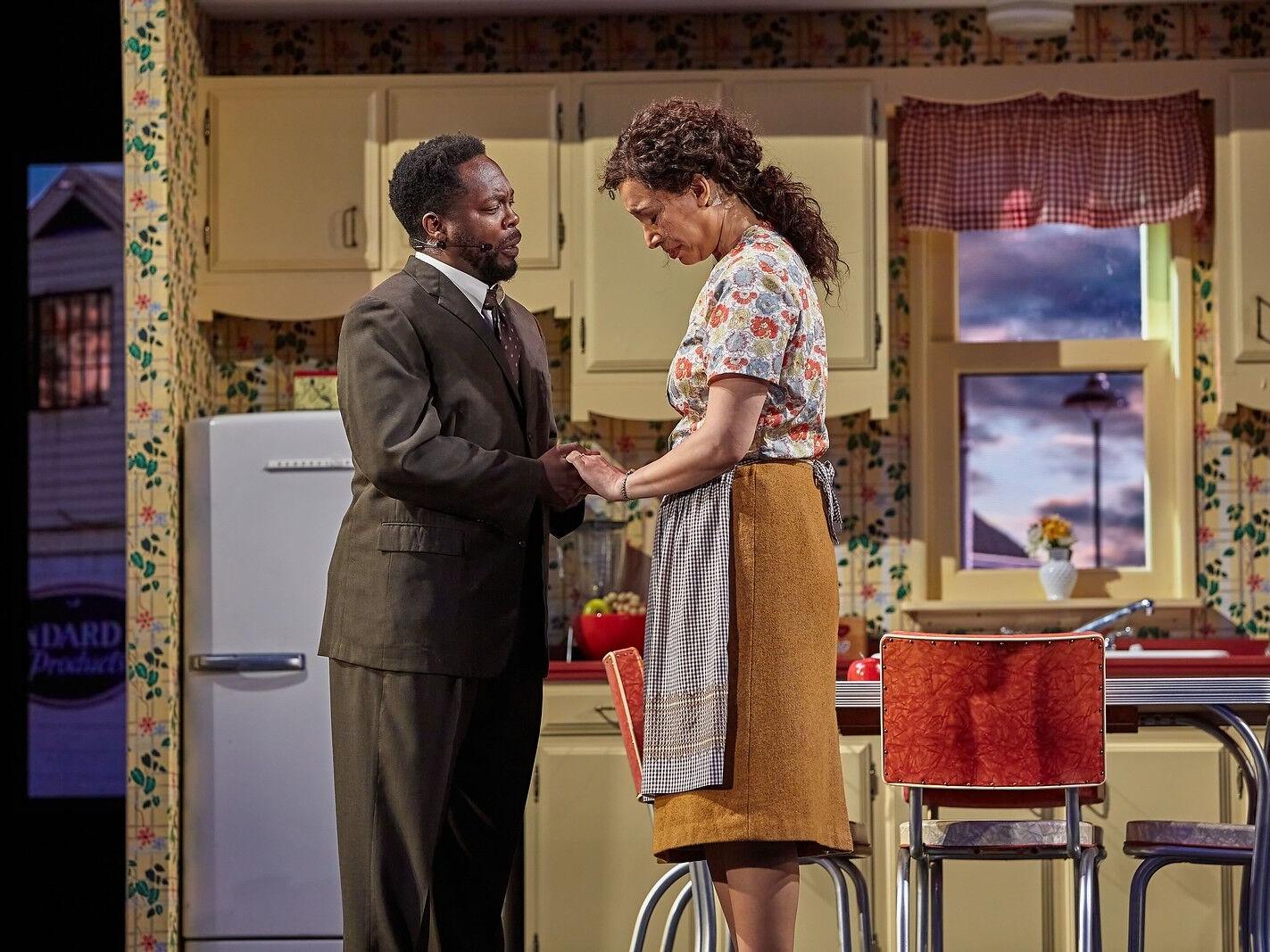 What is harder to see is Nate’s humanity. Still set him as the tenor, a voice type that typically portrays the heroic love interest in opera. His opening line is filled with great yearning—it leaps up an octave, outlining the tonic (home) notes of the scale, in this case F minor, and then settles on the sixth degree (D)–but over a tonic harmony that gives the effect of a deceptive cadence, which is an arrival that is not quite stable. The line is also filled with chromatic harmonies that are at odds with the accompaniment. Supported by diminished seventh chords (fully diminished and half diminished) his second line makes an initial jump of a tritone (F-B, spelled F-Cb), considered to be the most dissonant melodic interval, as he critiques his brother’s conception of success. Though the musical gestures are broad and sweeping, the harmonies underneath present conflict. This is the truth of Nate’s character. He is struggling as he fails to fulfill his mother’s dream that a college education will lead to great deeds of accomplishment that would garner respect and acclaim. Nate’s hopelessness as his dreams are unformed and undefined lurks below the surface of his bravura melody. Still poses several questions with Nate’s character. What does an educated Black man do when he returns to the modesty of his upbringing? In our current language of cultural constructions, can code-switching ideals bridge the gaps between the educated Nate and his working-class brother and sister-in-law when they define success in such different ways?